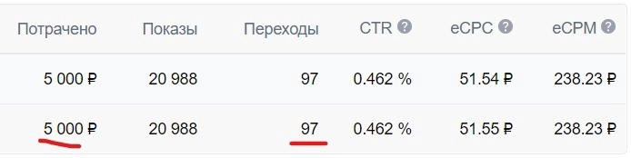 Бюджет тестовый во Вконтакте был очень скромный: 5000р